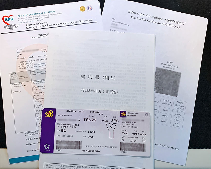 搭乗券(万が一機内で陽性者が出た時に座席番号で濃厚接触者かどうかの判断に必要)