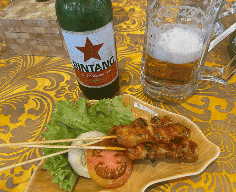 インドネシア名物料理「ミーゴレン」=焼きそばとチキンサテー・唐揚げを頂きました。