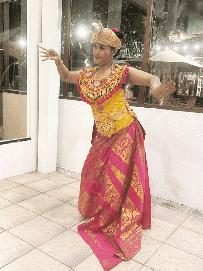 食事の後は、バリの伝統楽器「ガムラン」音楽に合わせ伝統舞踊レゴンダンスが披露されました♪