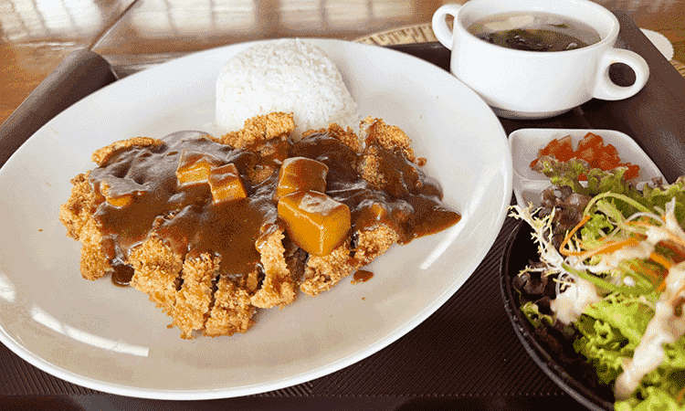 今日は、カツカレーにしました。カツもサクサク、みそ汁もいいお味でした。カレーのルーをもう少し多くしてくれるように頼みました。