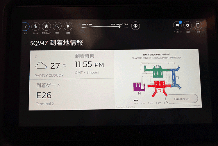 機内のモニターに乗り継ぎゲートが表示されるのでとても便利に感じました。