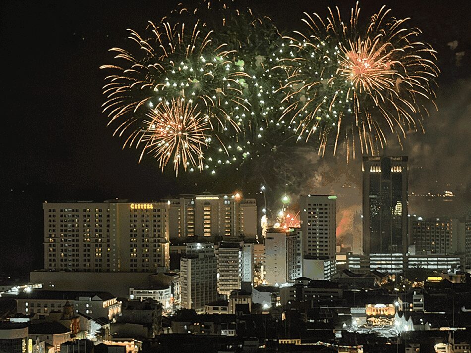 ホテルの最上階31階に、ジョージタウンの街並みやマラッカ海峡が一望できる「ヘリラウンジ」で。夜風が気持ちいいです。