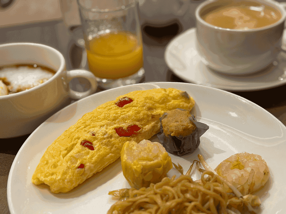 今回はエグゼクティブ・ルームの利用なので、30階の専用ラウンジで朝食をいただきました。6:30よりオープンしています。たまご料理はお好みで調理してくれます。
