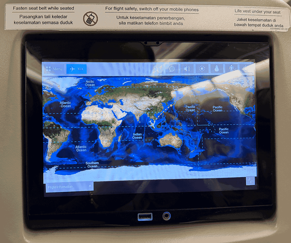 クアラルンプール発は、日付が変わり02:35で関空着が10:00です。マレーシア各地からの乗り継ぎにはいい時間ですが、やはり眠いですね。到着の2時間前に機内食が配膳されます。「Chicken Biryani」スパイスと鶏肉の炊き込みご飯をオーダーしましたが、かなり辛く感じました。